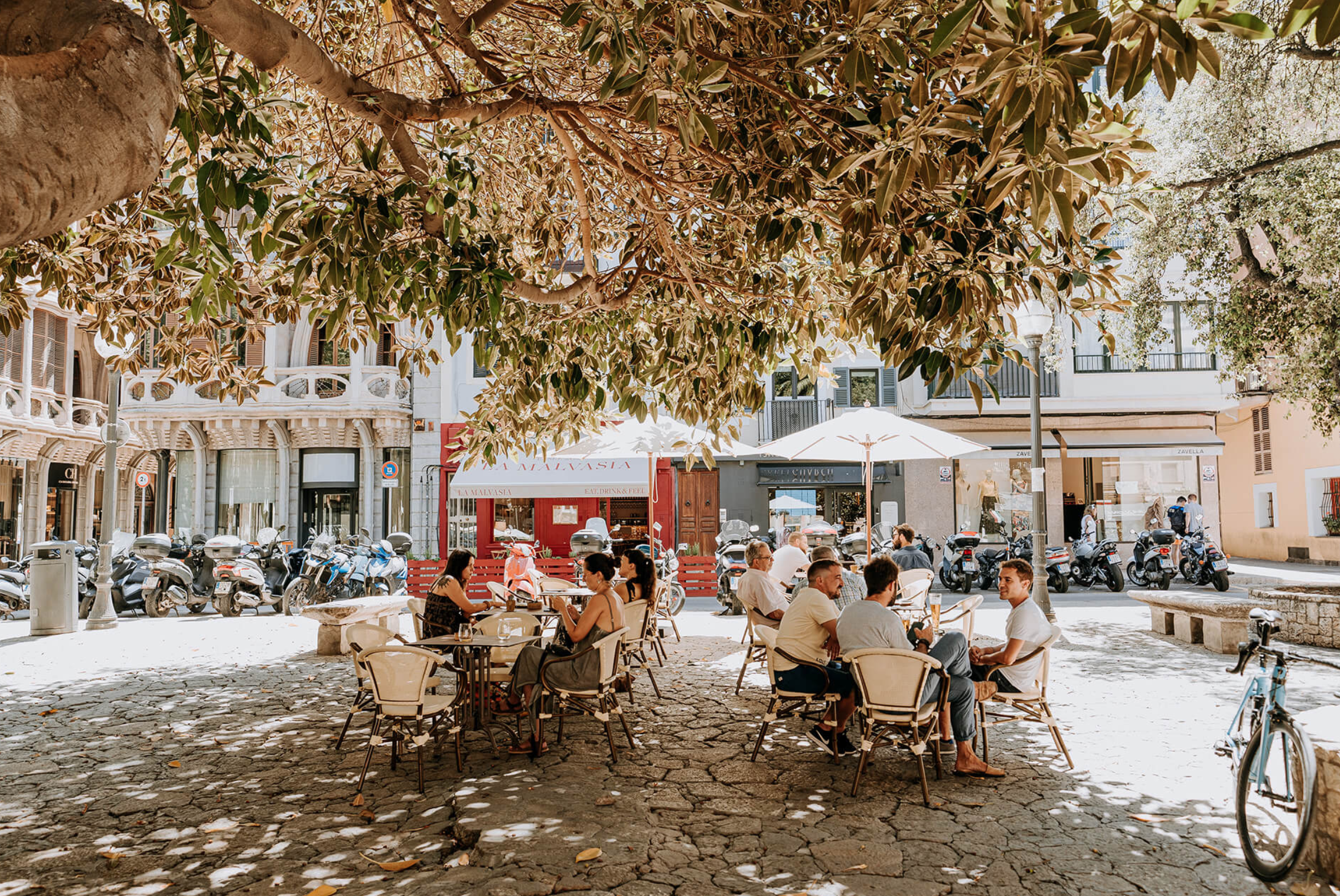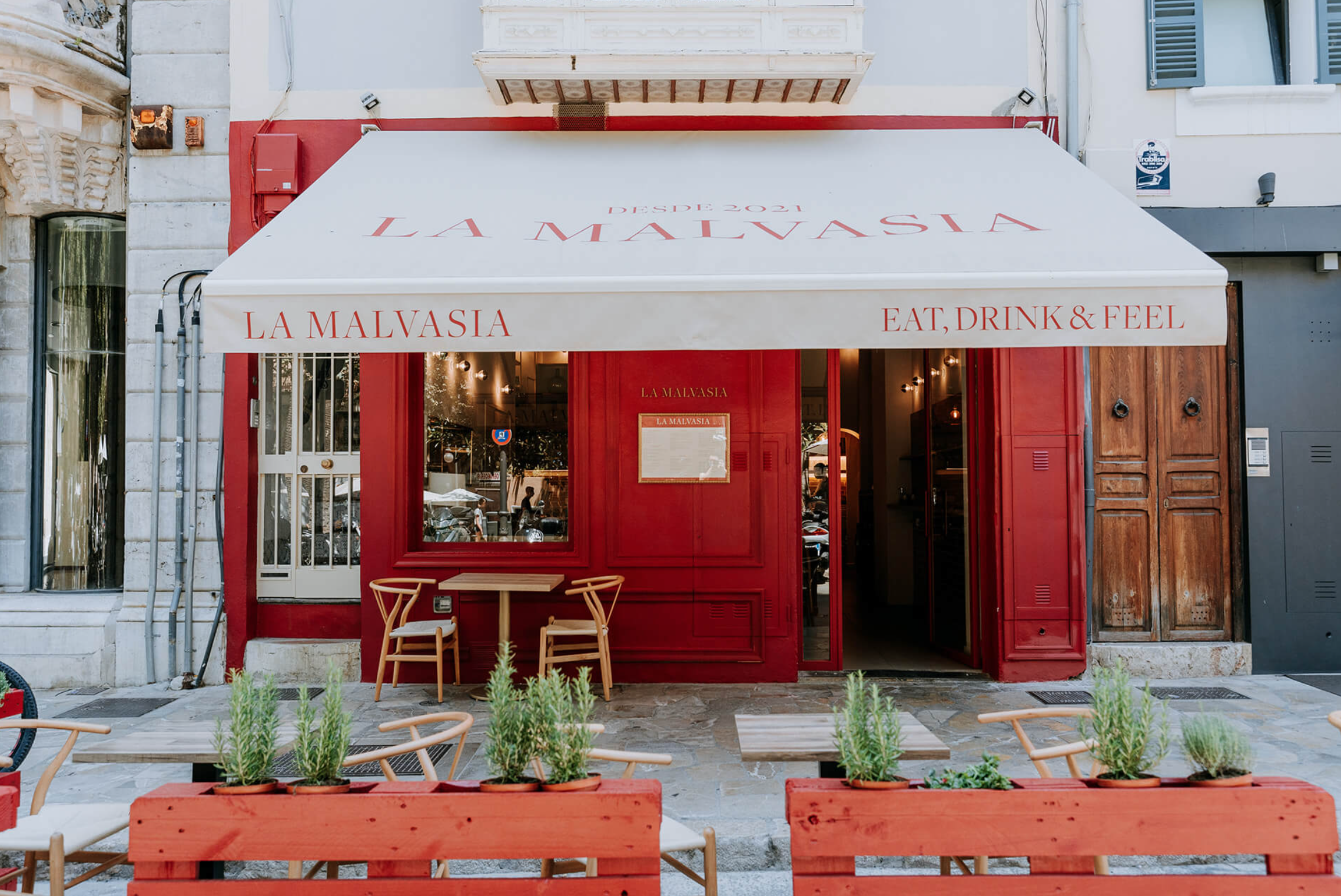 Situado en la Plaza del Mercat, en el conocido paseo del Borne, este restaurante es característico por ofrecer un vino propio, fabricado en las viñas de uva Malvasia, en la bodega de Can Pico, situado en Banyalbufar (Sierra de Tramuntana). En Mallorca, esta variedad es prácticamente exclusiva de la zona, cuya nomenclatura procedente del árabe significa “viñedos junto al mar”. La Malvasia nos ofrece una carta de cocina mediterránea de primera calidad, que junto a su exclusivo vino nos sirve una experiencia única. El restaurante dispone de una extensa carta de tapas y platos, para culminarla con postres caseros. También nos ofrece una segunda carta llamada “Entre horas” (de 3:45 h a 6:45 h) donde se puede disfrutar de platos como minihamburguesas, minitacos y brochetas, entre otros.